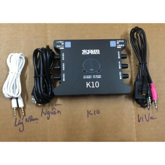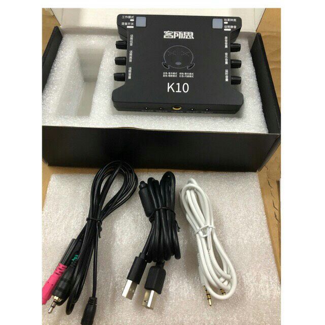 combo bộ sản phẩm gồm sounncard k10( đã có dây kết nối điện thoại 3.5mm và dây nguồn cấp ) và dây livestream 3 mầu chính hãng XOX bảo hsnhf 6 tháng 1-1.Âm thanh tiêu chuẩn 24bit/ 48k Hz