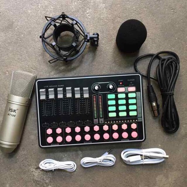 Bộ thu âm livestream 2 móm mic isk AT100-sound card H9 auto tun bảo hành