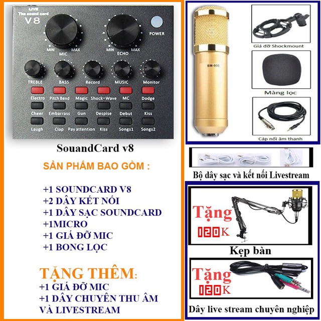 SALE BỘ THU ÂM KARAOKE LIVESTREAM có ngay autotune📻BỘ SẢN PHẨM COMBO micro BM.900 và bộ soundcard V8 autotune
