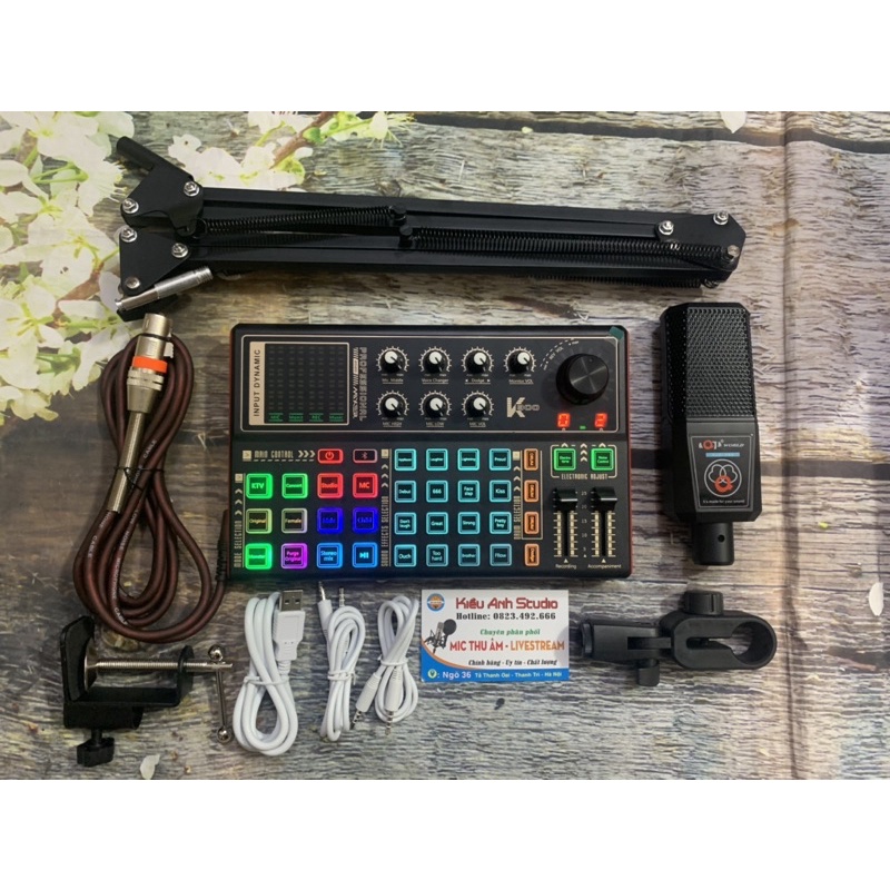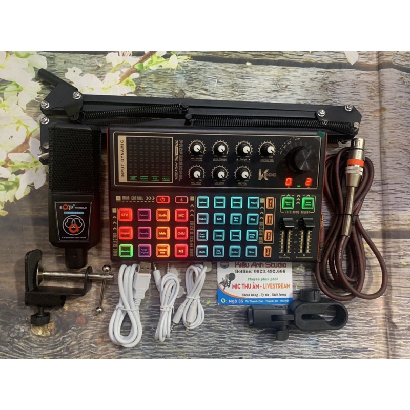 Bộ thu âm livestream k300 auto tune và mic alc 280 full phụ kiện