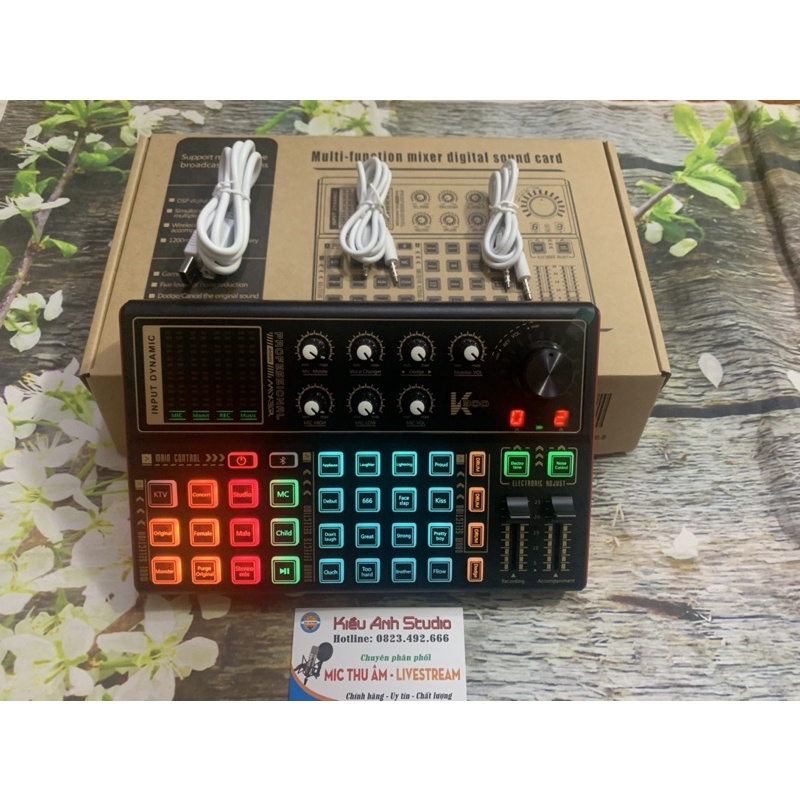 Các nút bấm và núm chỉnh của soundcard SK300 hoạt động hiệu quả và bền. Có các chức năng chỉnh tần số giọng, bass trable, âm lượng giọng, âm lượng nhạc nền… Ngoài ra còn có các núm chỉnh tiếng vang (giọng vang nhiều hay vang ít – echo) và các nút bấm chỉnh hiệu ứng giọng. Sound card SK300 có thể đổi giọng người dùng thành giọng trẻ con, giọng phụ nữ, ông già. Thích hợp cho việc live stream trên các nền tảng như facebook, tiktok, bigo…