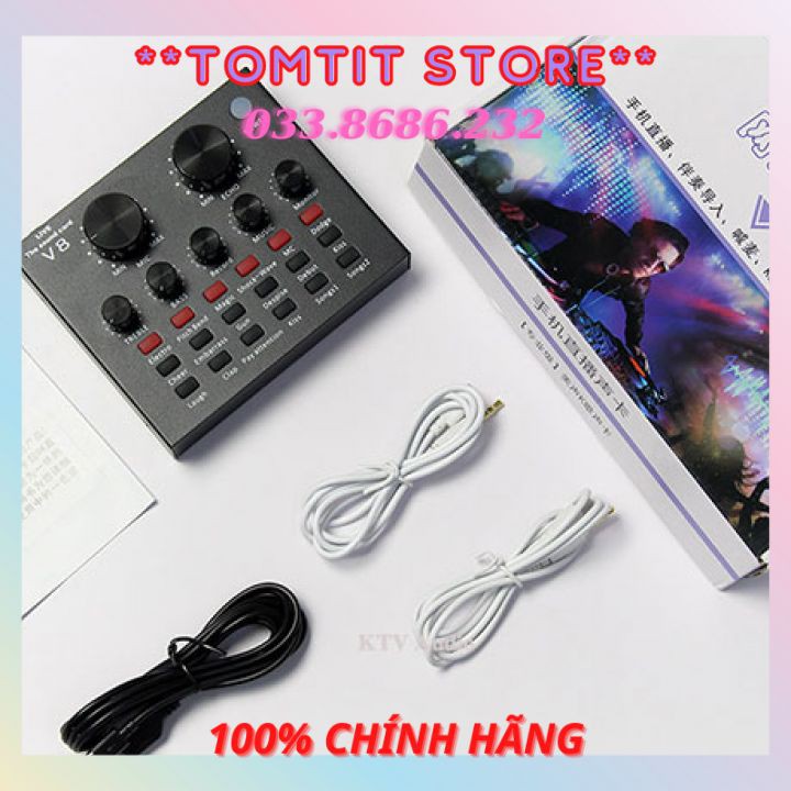 Sound card thu âm V8 là sản phẩm card âm thanh tương thích với nhiều thiết bị như smartphone, laptop, pc, máy tính bảng. Với tính năng làm méo giọng hát, thành giọng trẻ em, người già, Khả năng chèn các hiệu ứng âm thanh vào các đoạn thu như tiếng vỗ tay, tiếng hò reo, nhạc cổ vũ, tiếng chim kêu... với 12 hiệu ứng âm thanh, sẽ đem lại cho bạn trải nghiệm thu âm vô cùng thú vị.