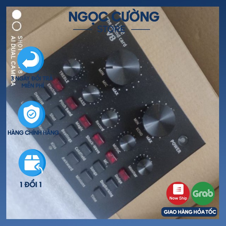 Sound card thu âm V8 là sản phẩm card âm thanh tương thích với nhiều thiết bị như smartphone, laptop, pc, máy tính bảng. Với tính năng làm méo giọng hát, thành giọng trẻ em, người già, Khả năng chèn các hiệu ứng âm thanh vào các đoạn thu như tiếng vỗ tay, tiếng hò reo, nhạc cổ vũ, tiếng chim kêu... với 12 hiệu ứng âm thanh, sẽ đem lại cho bạn trải nghiệm thu âm vô cùng thú vị.