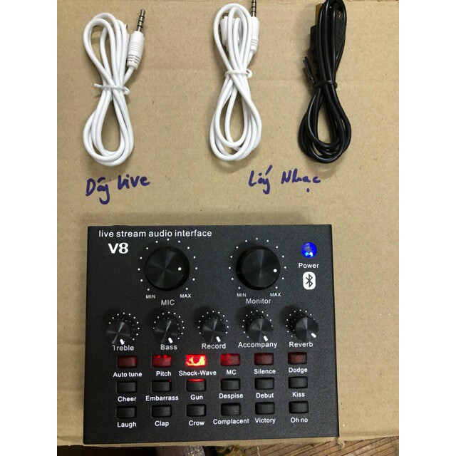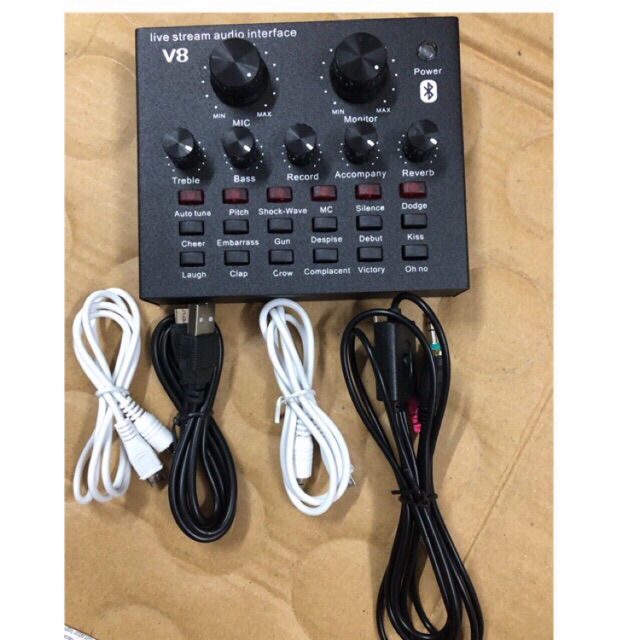 Combo gôm v8 tiếng anh và dây live 3 mầu- sound v8 đầy đủ dây kết nối phiên bản tiếng anh dễ sử dụng đầy đủ hiệu ứng.