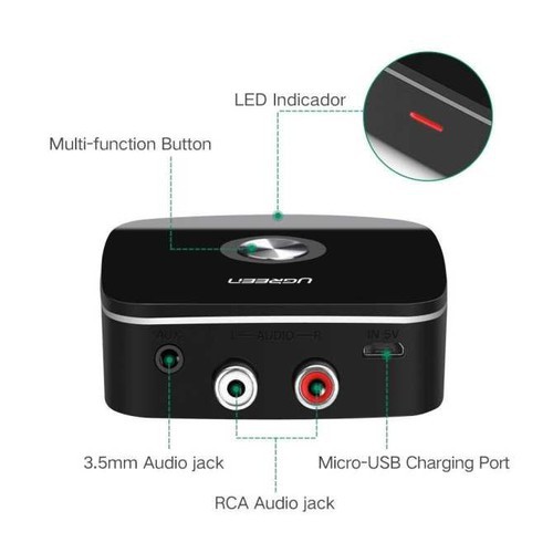 - Thiết bị biến loa thường thành loa Bluetooth cao cấp Ugreen 40759 sẽ biến chiếc loa, amply bình thường của bạn thành một thiết bị phát nhạc không dây với chất lượng âm thanh tuyệt hảo. Trải nghiệm công nghệ giải trí tiện lợi ở mọi nơi. Thiết bị tích hợp cổng kết nối RCA bông sen dùng cho Amply và cổng Audio 3.5mm dùng cho loa điện tử và các thiết bị phát nhạc khác.