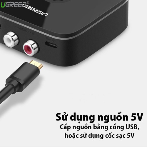 Phạm vi nhận tín hiệu bluetooth của Ugreen 30445 lên tới 10m, có cổng tiếp điện thông qua Micro USB.