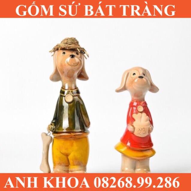 Thú gốm decor Chó mũ nan cầm xương - Gốm sứ Bát Tràng Anh Khoa