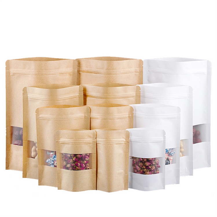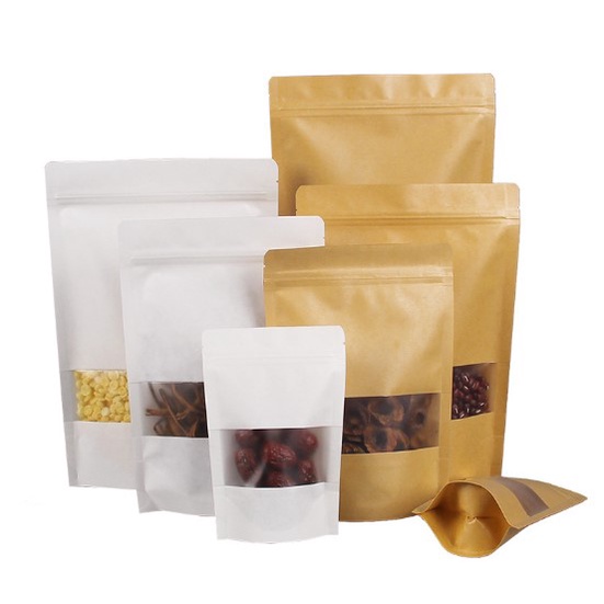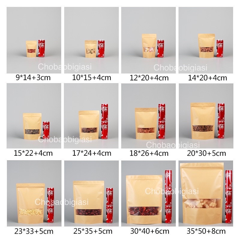 Giới thiệu {Thử mẫu 1 cái/ size} Túi zipper giấy Kraft màu VÀNG /TRẮNG đáy đứng cửa sổ tràn CÁN MÀNG - CHỐNG THẤM NƯỚC (sp y hình)