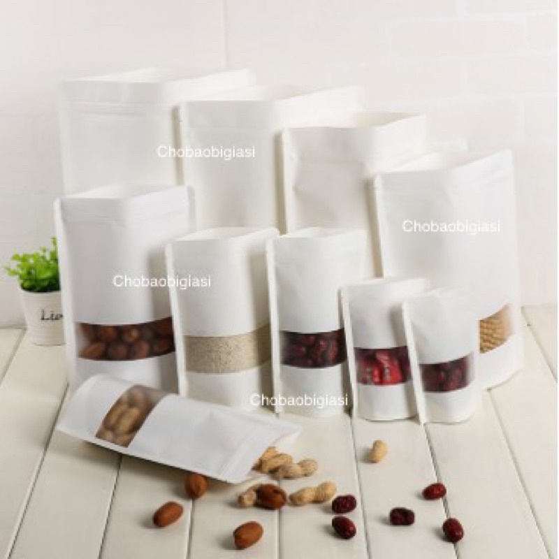 - Chobaobigiasi (CBB) chuyên cung cấp các loại túi zipper giấy Kraft MÀU TRẮNG đáy đứng - cửa sổ tràn loại có CÁN MÀNG - CHỐNG THẤM NƯỚC. Túi zipper giấy kraft bên ngoài chống thấm tốt, bên trong chống ẩm tốt, đảm bảo vệ sinh thực phẩm. Phù hợp sử dụng cho các loại thực phẩm khô: Cà phê, nông sản khô, ngũ cốc, các loại hạt, bột đắp mặt nạ, trái cây sấy...- THÔNG TIN SẢN PHẨM: