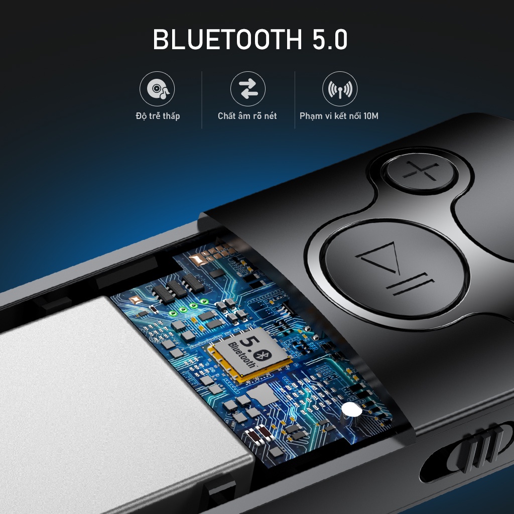 - Bộ thu nhận âm thanh với bluetooth 5.0, chất lượng âm thanh HD, độ trễ thấp, thời gian phát lên đến10 giờ.
