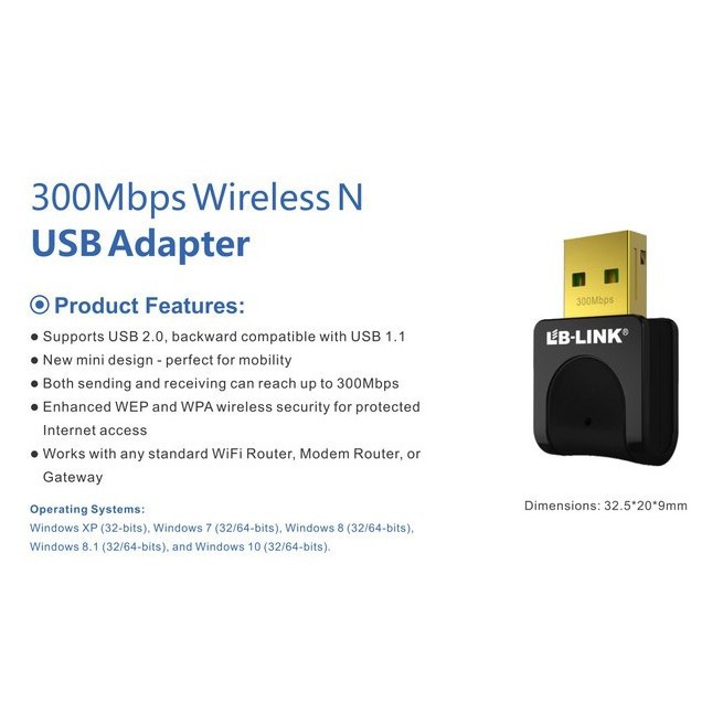Bộ thu sóng Wifi LB-Link BL-WN351 - Chính hãng bảo hành 24 tháng- Tốc độ gửi và nhận 300Mbps