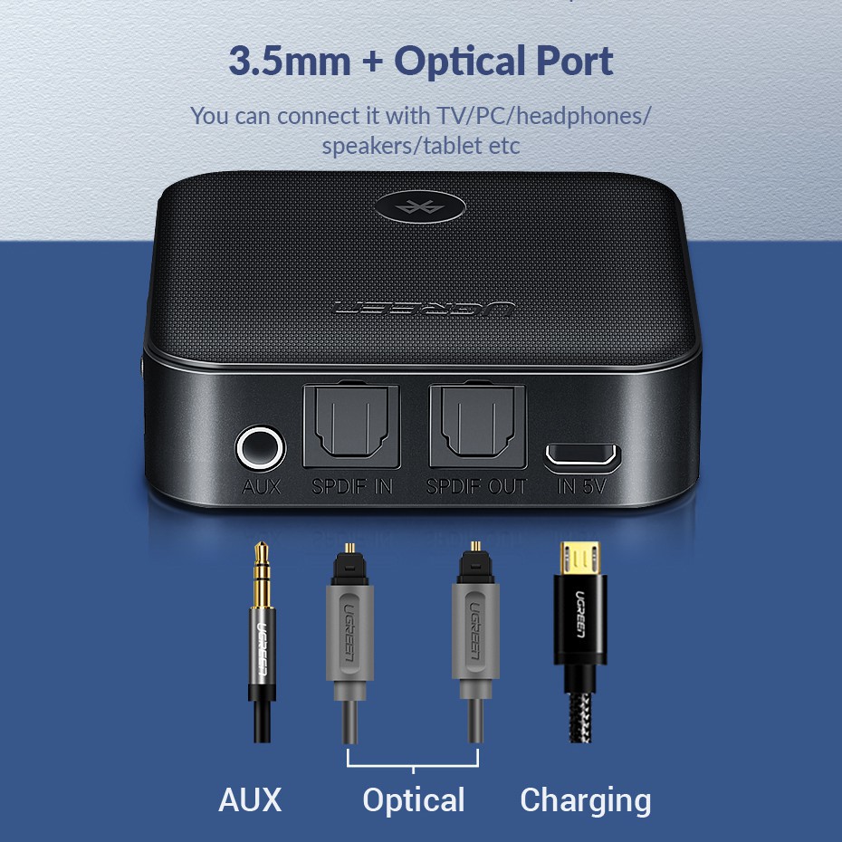 Bộ Thu và Phát Bluetooth 5.0 UGreen 70158 Chính Hảng CM144 (2 in 1,Chíp APTX Cổng Quang+AV tặng kèm 4 dây Ugreen)