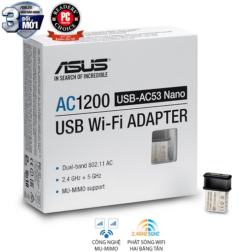 Máy tính & Laptop > Thiết Bị Mạng > Bộ Thu Wifi || Bộ thu Wifi ASUS USB-AC53 Nano Hai băng tần chuẩn AC1200Mbps (Usb thu sóng Wifi)Còn hàng