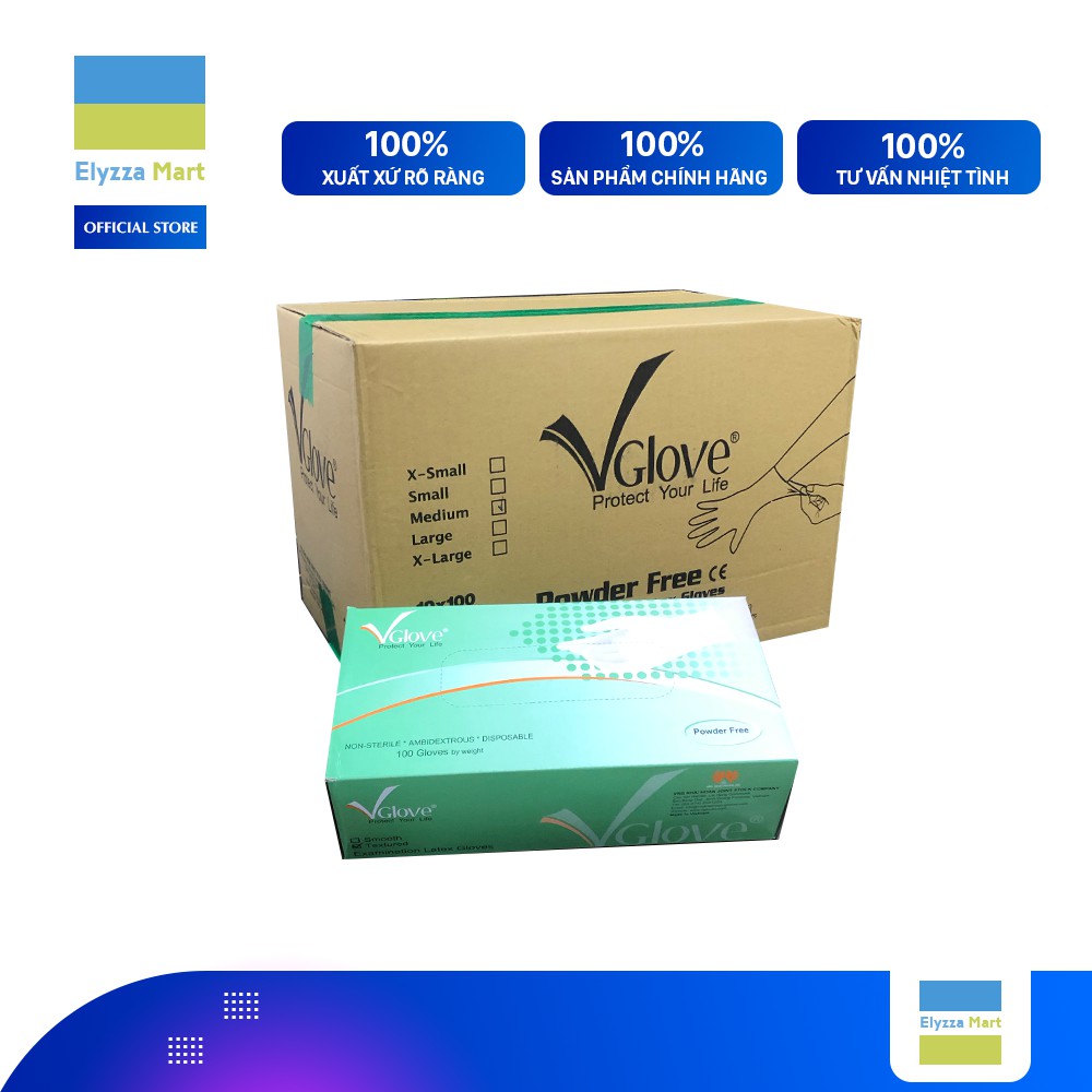 Nhà cửa & Đời sống > Dụng cụ & Thiết bị tiện ích > Găng tay, kính bảo hộ & mặt nạ || Thùng 10 Hộp Găng Tay Y Tế Latex Không Bột VGloves Màu TrắngCòn hàng