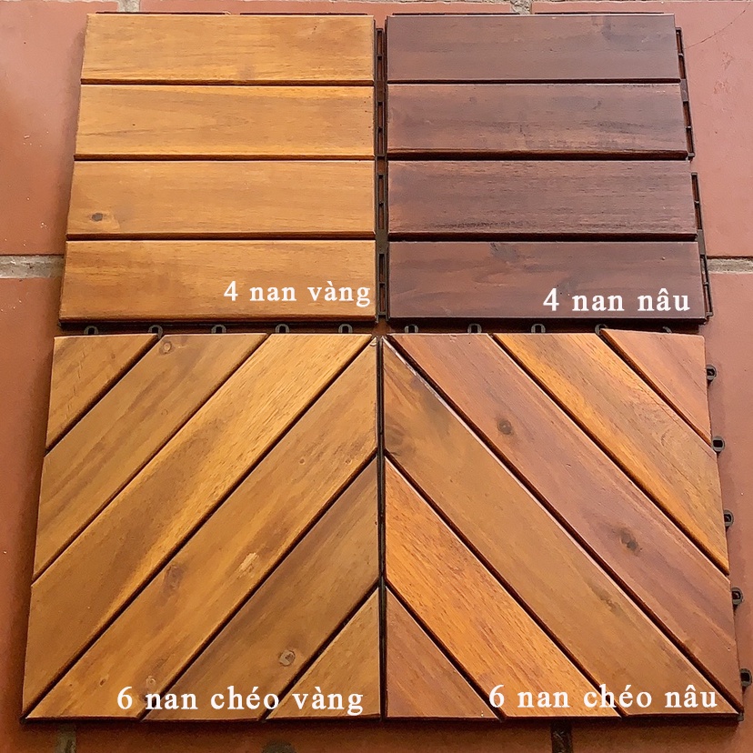 Thùng 10 Vỉ sàn gỗ tự nhiên vỉ nhựa, thảm gỗ lót nền ban công sân vườn 4 nan dùng cho 1m2= 11 tấm -Tự lắp ráp Home Decor