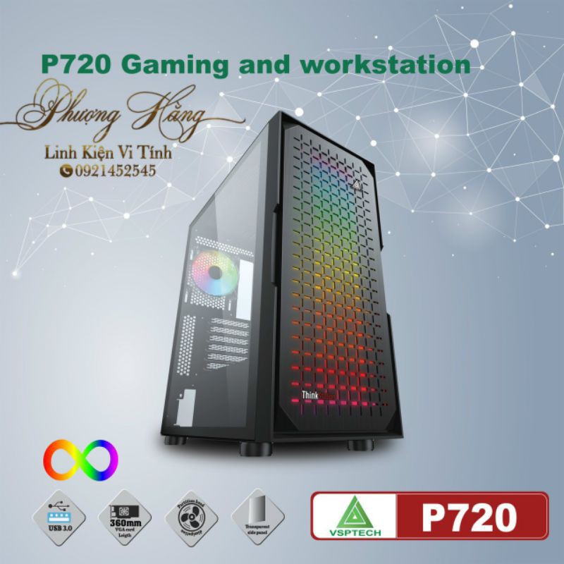 Máy tính & Laptop > Linh Kiện Máy Tính > Case Máy Tính || Thùng Case Máy Tính VSP P720 Led RGB Chuẩn Full ATX - Mặt Trước LED RGB và Nắp hông phải làm bằng kính cường lựcCòn hàng
