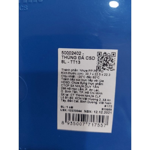 sản phẩm màu xanh dươngloại 8 lít, có quai xách tiện lợi