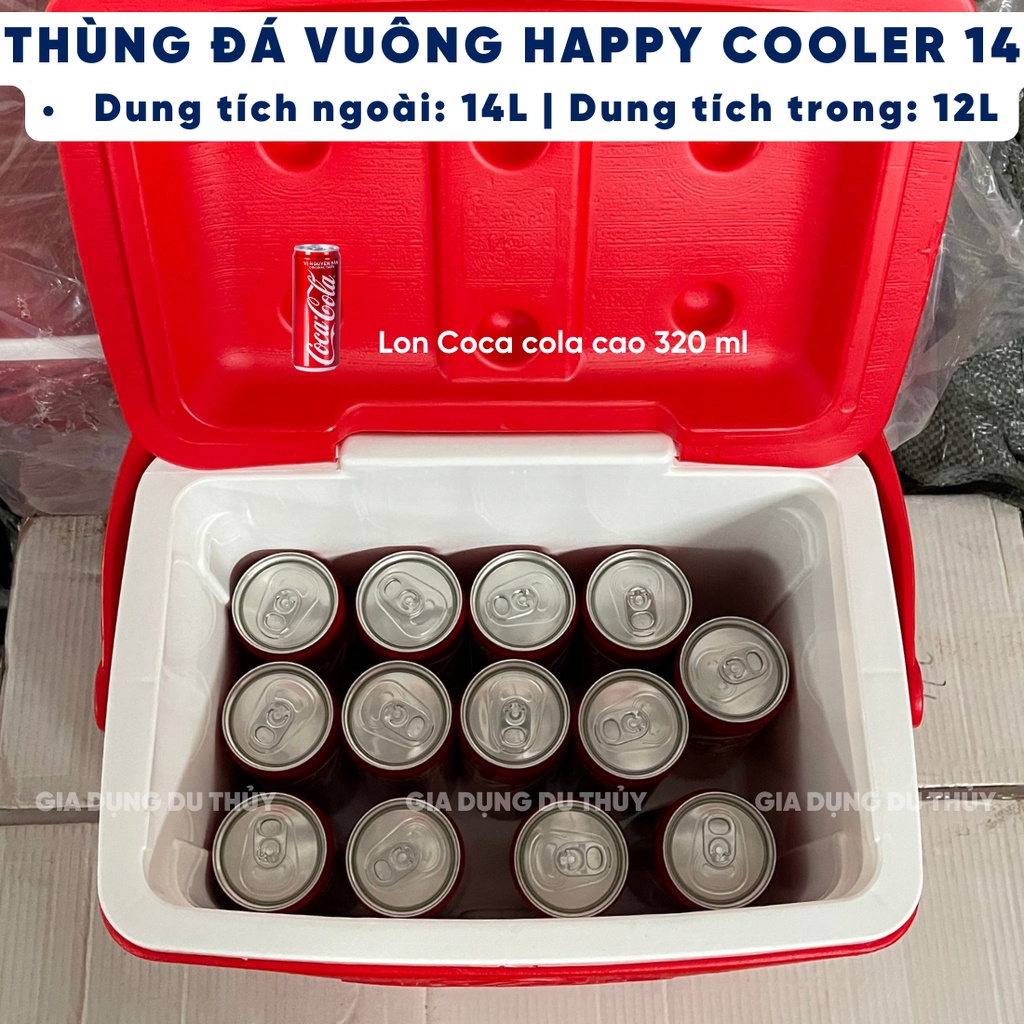 Thùng đá giữ nhiệt 36h dung tích 14L thương hiệu Happy Cooler có quai xách tiện lợi không chứa BPA an toàn cho sức khỏe