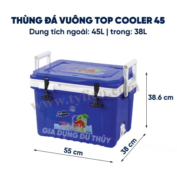 Thùng đá giữ nhiệt vuông giữ lạnh 100 giờ, dung tích 45L Top Cooler có quai xách, không chứa BPA an toàn cho sức khỏe