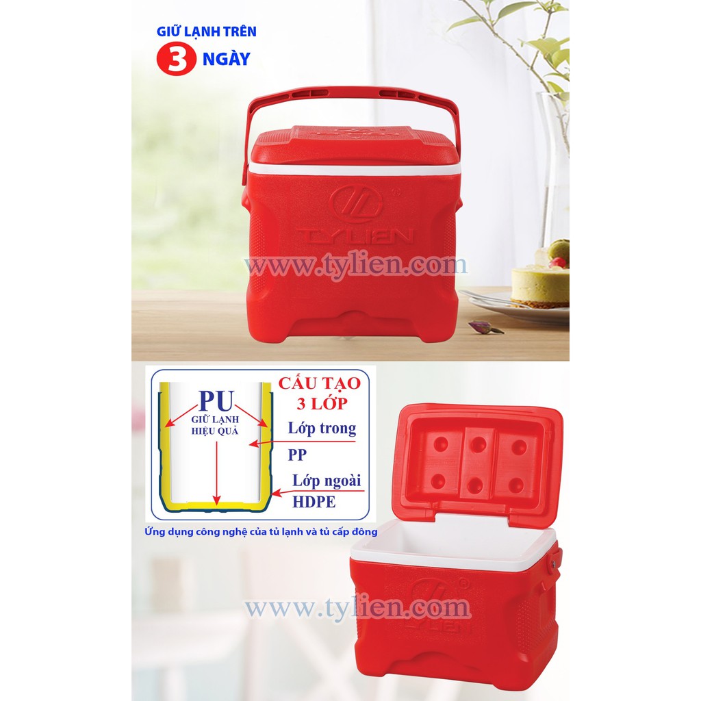 • Ứng dụng công nghệ của tủ lạnh, tủ cấp động. Thùng đá vuông có cấu tạo 3 lớp: lớp ngoài HDPE, lớp giữ PU giữ lạnh hiệu quả, lớp trong cùng là nhựa PP an toàn. Cho khả năng giữa lạnh lên đến 36h.