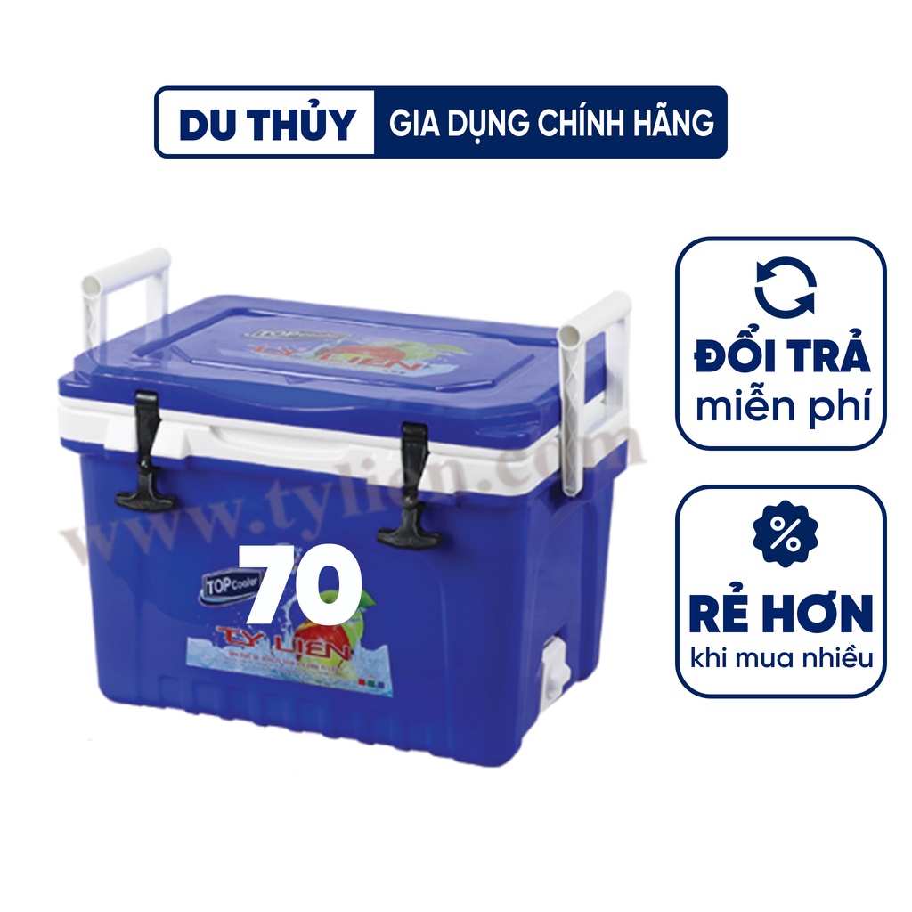 - Thùng đá 70 lít sử dụng để đựng đá, ướp lạnh đồ uống, thực phẩm. Sản phẩm phù hợp đựng đá cho phòng trọ, du lịch, dã ngoại hoặc ướp bia.