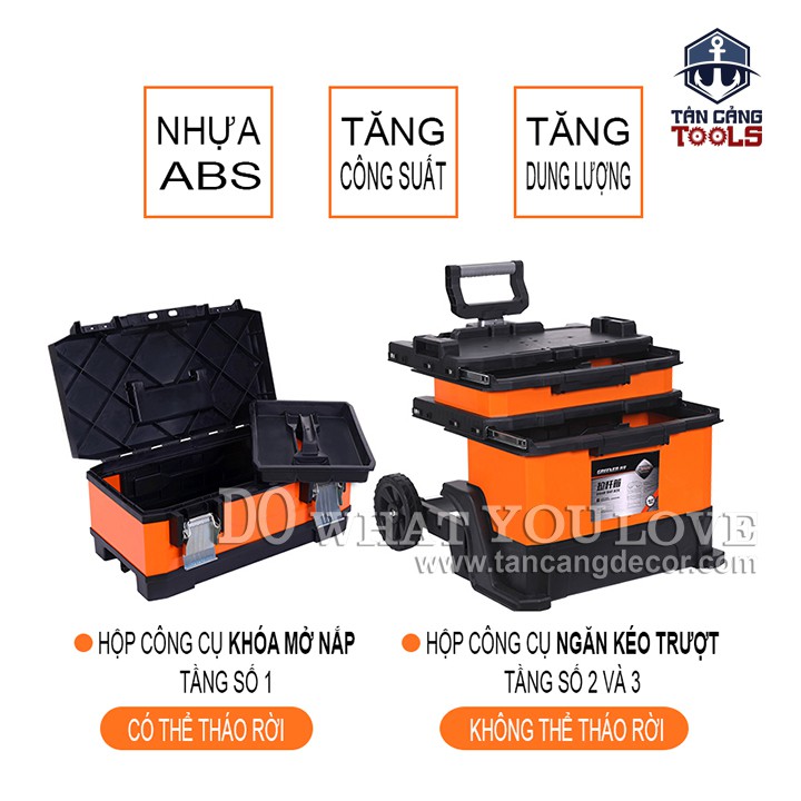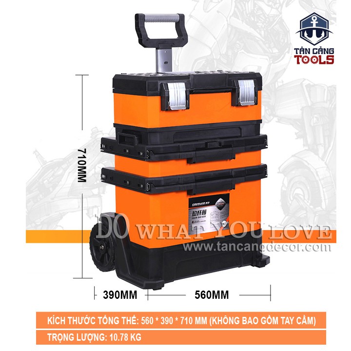 - Đặc điểm nổi bật của sản phẩm là khả năng di chuyển linh hoạt, với tay kéo chắc chắn giúp bạn tiết kiệm thời gian và nhẹ nhàng hơn trong quá trình vận chuyển dụng cụ.