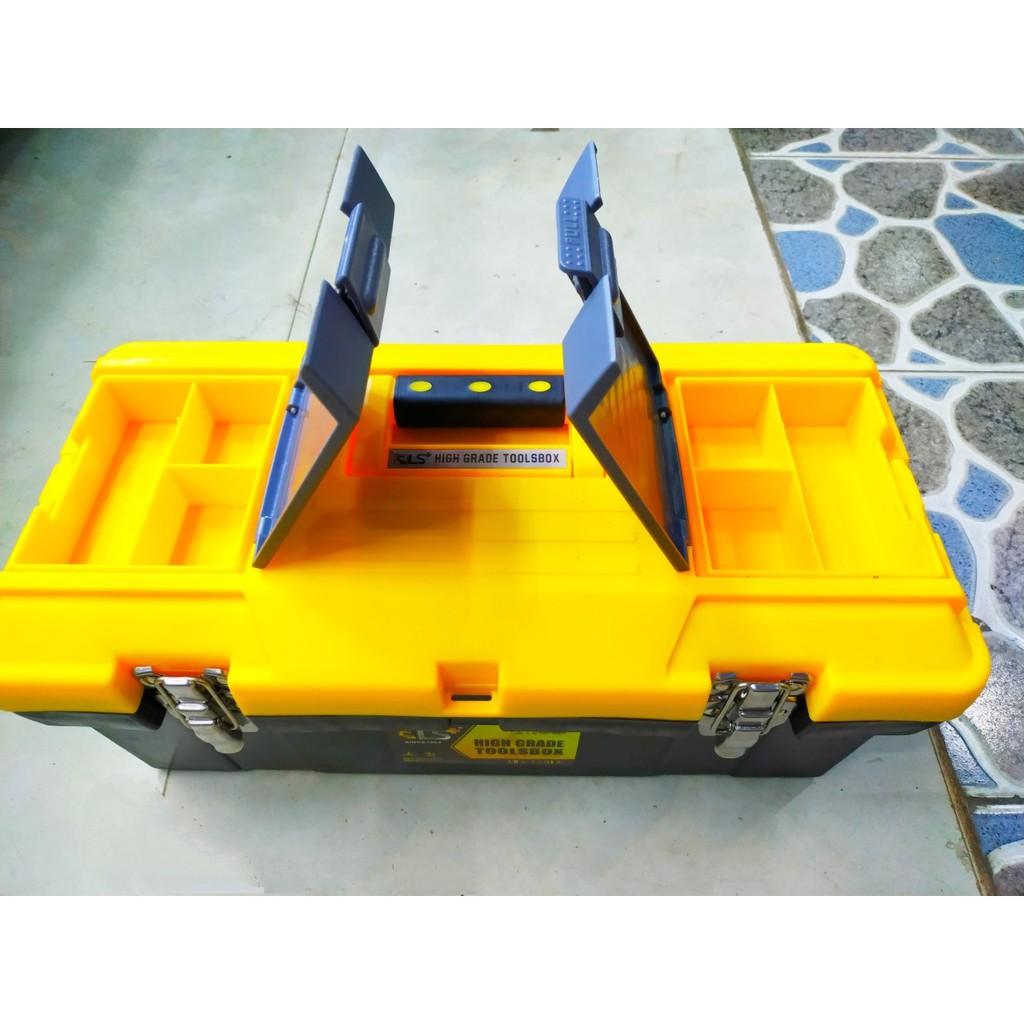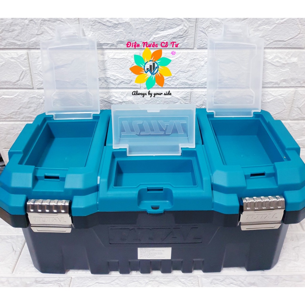 Thùng đựng đồ nghề đủ kích cỡKhóa thùng làm bằng inox, mặt nắp thùng có nhiều ngăn nhỏ để đựng bù lon, ốc vít/ linh tinh.