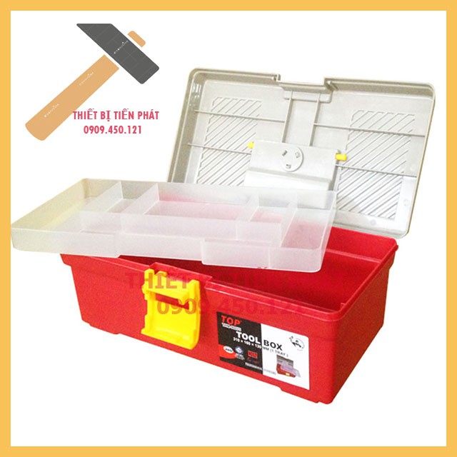 Thùng đồ nghề bằng nhựa thương hiệu Top, được sản xuất tại Đài Loan, và được làm từ chất liệu nhựa PP và ABS