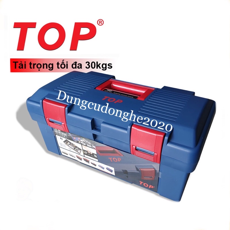 Thùng đồ nghề bằng nhựa thương hiệu Top, được sản xuất tại Đài Loan, và được làm từ chất liệu nhựa PP và ABS cao cấp Thùng được thiết kế nhỏ gọn với kích thước Dài 445, Rộng 240, Cao 205mm, và có quai xách chắc chắn, có thể đựng tối đa 30kg