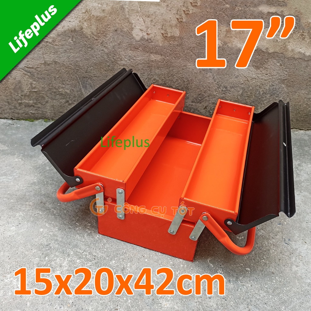 Nhà cửa & Đời sống > Dụng cụ & Thiết bị tiện ích > Dụng cụ > Hộp dụng cụ cầm tay || Thùng đồ nghề sắt 2 tầng 3 ngăn 17 inch 15x20x42cm màu cam đenCòn hàng
