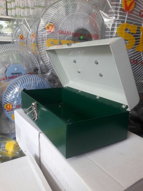 * Toàn bộ thùng và phần nắp 100% là sắt sơn tĩnh điện màu bóng đẹp như ảnh, khóa Inox, tay cầm bằng nhựa đúc chắc chắn.