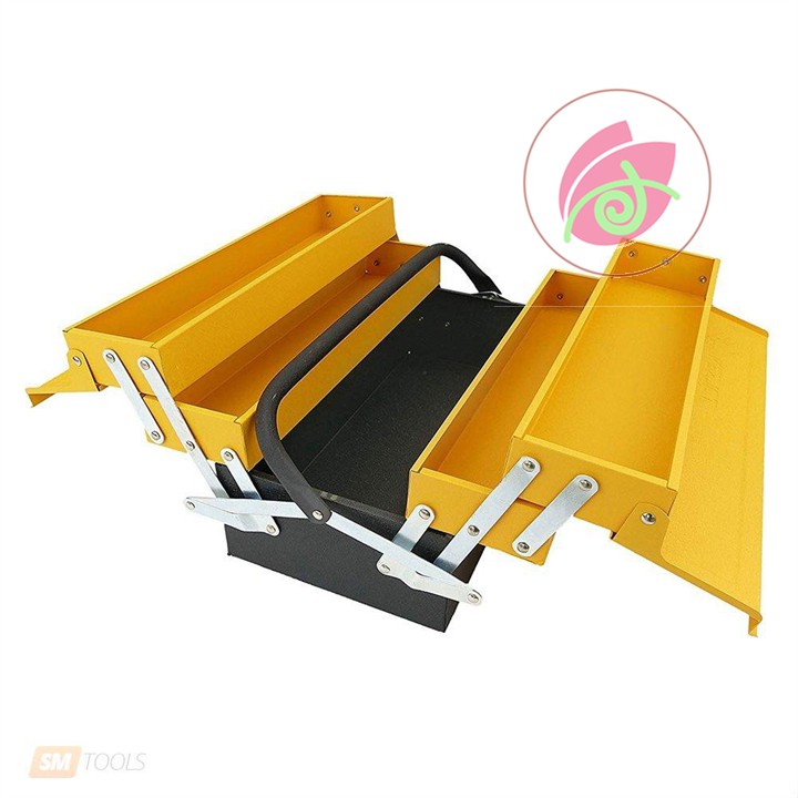 4 tầng nhỏ và 1 thùng lớn ở đáy hộp, giúp chia đồ nghề gọn gàng, dễ tìm kiếm, tránh gây va chạm, hư hỏng dụng cụ