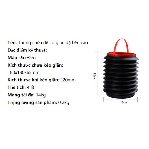 Thùng đựng đồ 4L co dãn cho ô tô. Còn gọi là thùng đựng đồ ma thuật, khi cần to sẽ to, khi cần nhỏ sẽ nhỏ, không làm chiếm không gian cốp xe.Dùng đựng đồ cốp sau ô tô, làm thùng rác, đi picnic...có nhiều tính năng rất tiện dụng, không còn lo chất bẩn chảy ra nỉ xe.