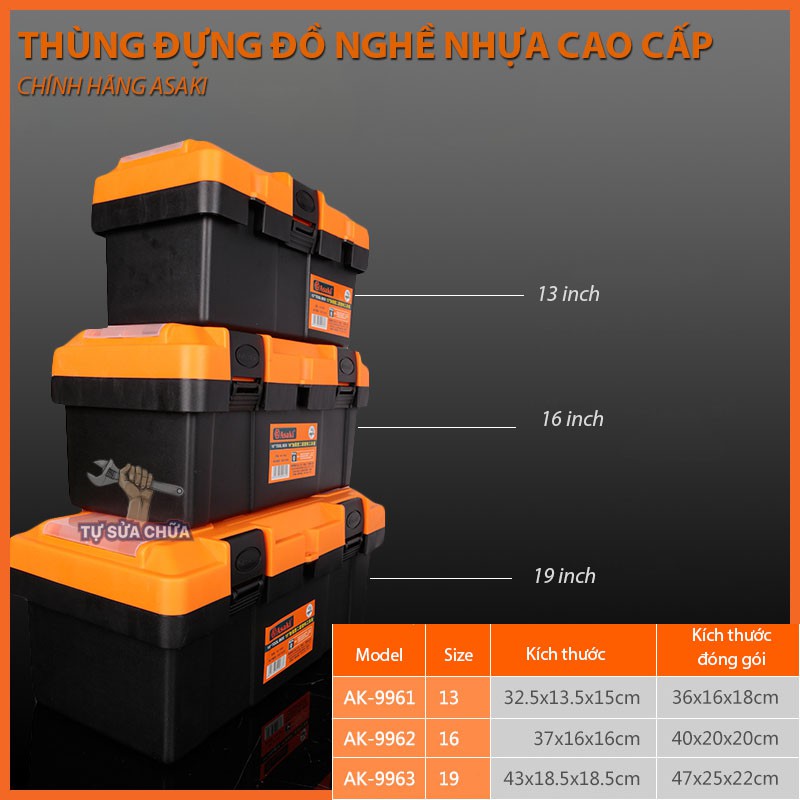 Thùng đựng đồ nghề nhựa PP cao cấp chính hãng Asaki siêu bền - Hộp đựng dụng cụ