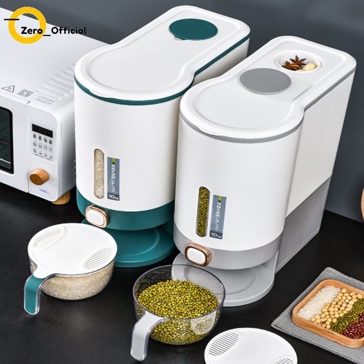 -Hình dạng thùng gạo tròn và lưu trữ độc đáo, chỉ cần thao tác bấm mở nắp, dễ dàng tốc độ mở trong vòng 0.3 giây nhanh chóng lấy gạo ra