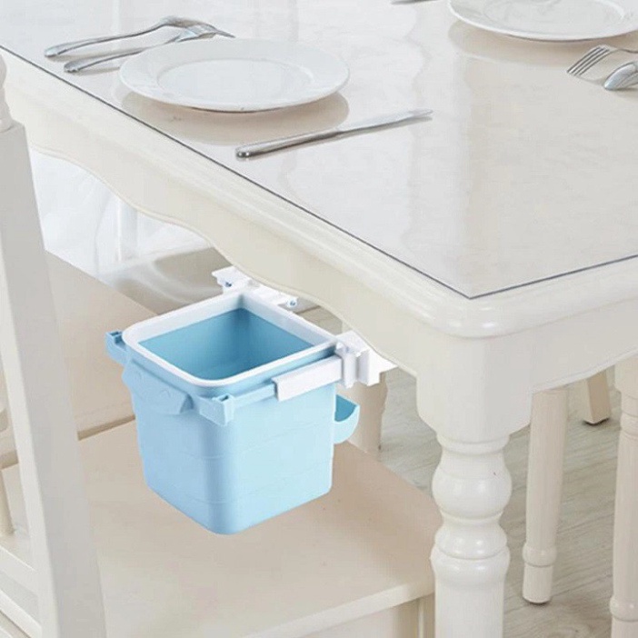 Thùng đựng rác thông minh để ẩn dưới mặt bàn, hộp đựng rác đa năng có ngăn kéo.Bàn làm việc, hay bàn ăn của bạn luôn chất đống các loại mảnh vụn, giấy tờ, tài liệu hay vật dụng không cần thiết trên mặt bàn. Nhìn qua đã thấy bừa bộn nhưng bạn lại lười không muốn dọn dẹp do thùng rác ở xa, hoặc bận làm việc... Thùng rác có ngăn kéo ẩn dưới bàn này là thứ mà bạn cần. Sản phẩm không sử dụng đinh để đóng hay bắt vít để khoan mà sử dụng loại băng dính đặc biệt để gắn chặt vào mặt dưới của bàn ăn, mặt bàn sofa trong phòng khách hay gắn dưới bàn làm việc, bàn máy tính một cách dễ dàng.