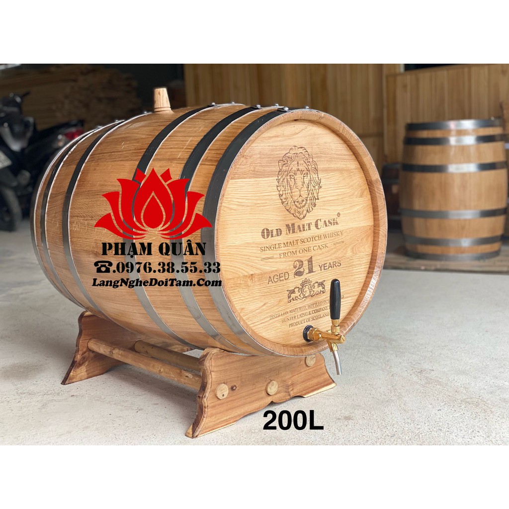 CSSX Thùng Gỗ Phạm Quân phân phối sỉ lẻ thùng đựng rượu bằng gỗ sồi có dung tích 20 lit, 30 lit, 50 lit, 100 lit, 200lit trên toàn quốc. Bảo hành không keo không hóa chất với chất liệu gỗ sồi Nga chuẩn 100%.Thùng rượu gỗ được nén 6 đai tôn mạ kẽm không rỉ và được tán dinh ở điểm nối, giá đỡ thùng rượu luôn đi kèm theo sản phẩm.