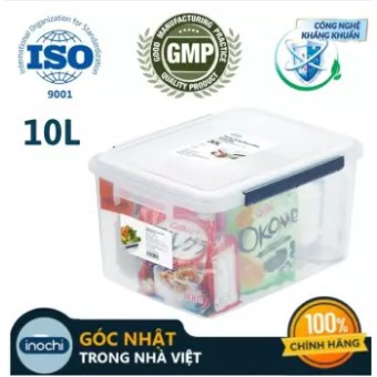 Thùng đựng thực phẩm Hokkaido- Inochi 10_18_30L (Thân màu trắng trong - Nắp giao màu ngẫu nhiên)- Thùng thực phẩm Hokkaido 10L