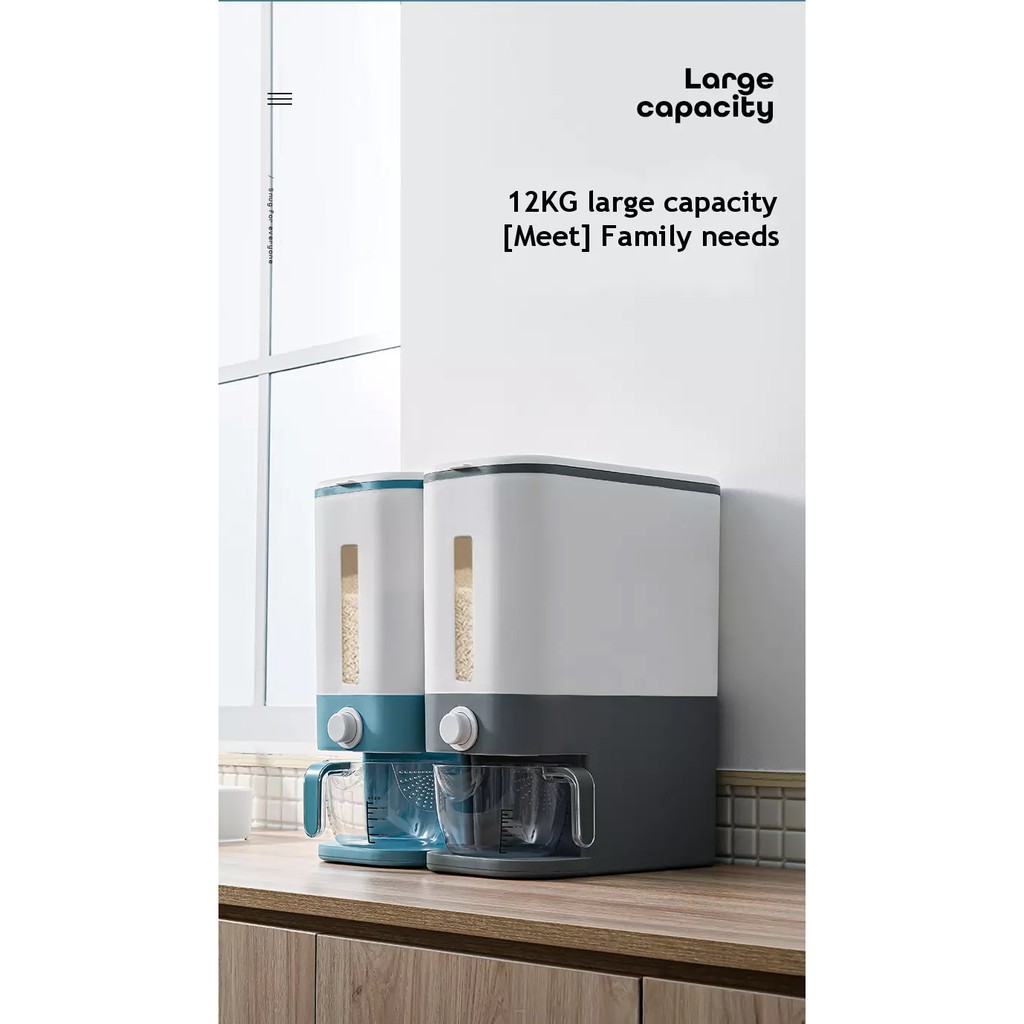 Nhà cửa & Đời sống > Dụng cụ nhà bếp > Dụng cụ đo lường || Thùng gạo thông minh 12Kg có ca đong chia vạch - Thùng đựng gạo ngũ cốcCòn hàng