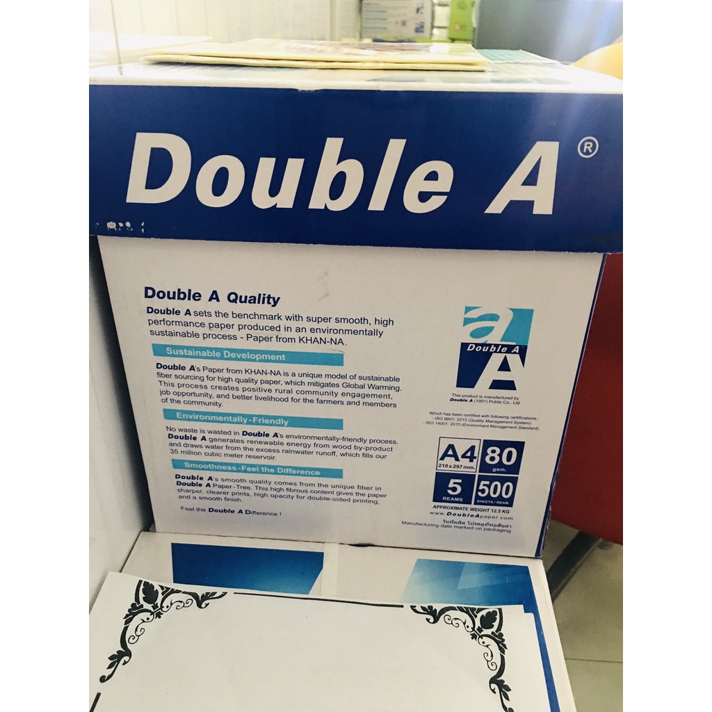 Giấy Double A là loại giấy có chất lượng cao cấp, thích hợp với tất cả các loại máy in,máy photo hiện đại,đảm bảo chất lượng và hiệu quả in cao nhất.