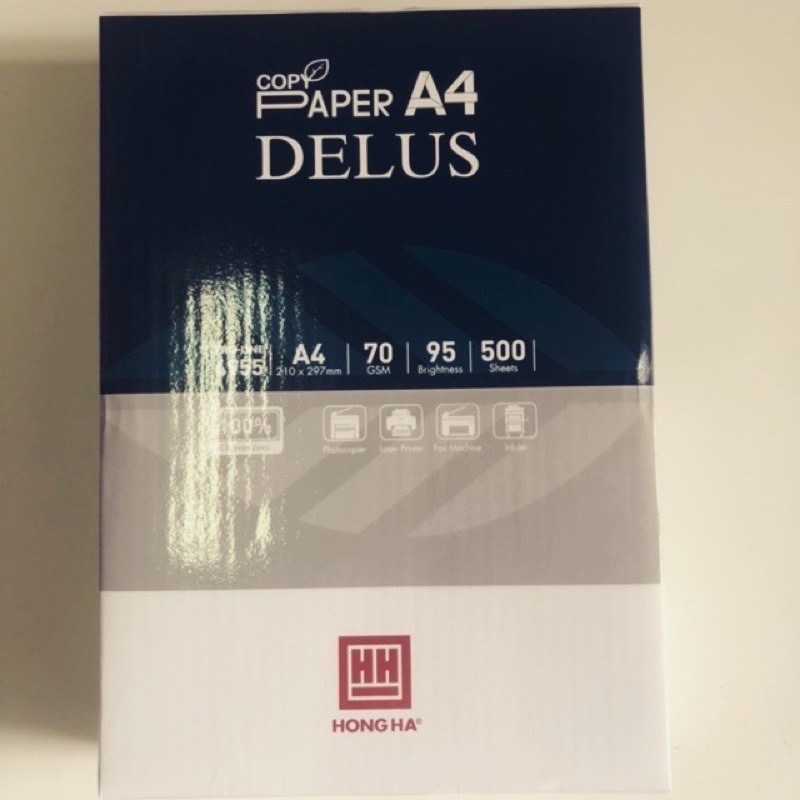 Giấy in A4 Hồng Hà Delus 75gms 4955 là sản phẩm giấy xuất xứ từ Indonesia, được sản xuất với công nghệ tiên tiến, hiện đại, đóng gói bằng dây chuyền hoàn toàn tự động.ƯU ĐIỂM NỔI BẬT
