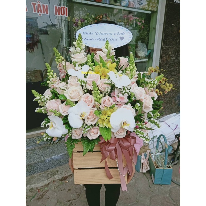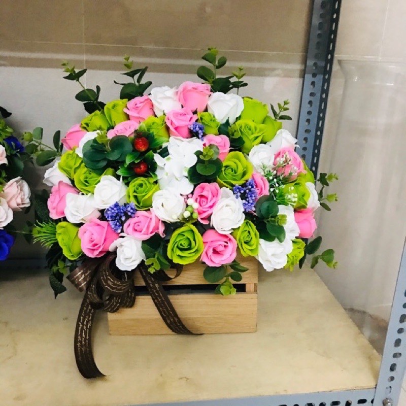 thùng gỗ cắm hoa kiểu vintage Giokích thước cao 20 rộng 17 dài 28cm