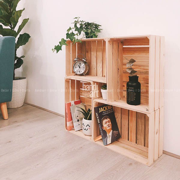 Kệ gỗ palletĐược làm từ gỗ thông có vân gỗ mộc mạc, đáy thùng nẹp thanh