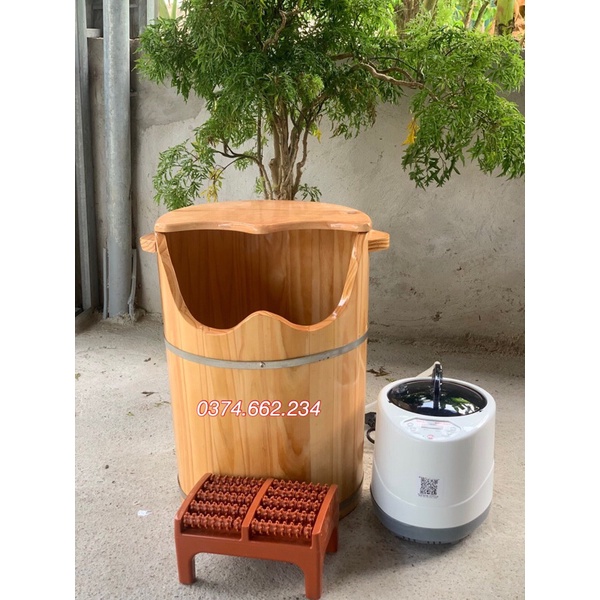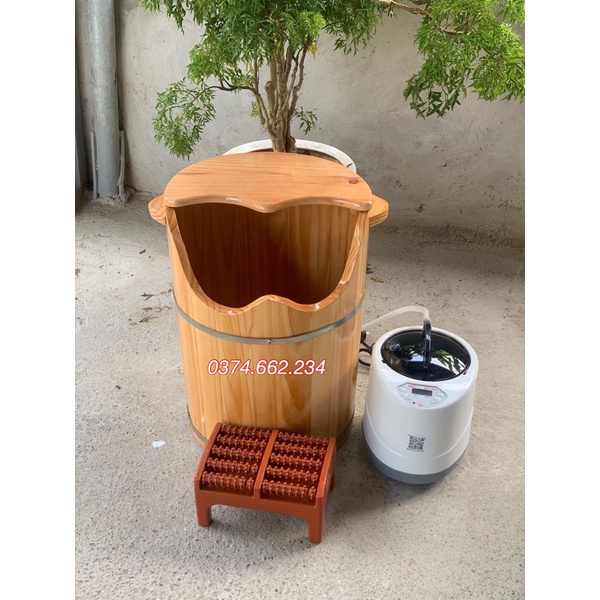 💥 Cấu tạo : gồm thùng gỗ kt đường kính miệng 42 cm, đường kính đáy 38 cm , cao 55 cm + máy xông 2 lít + 1 ghế bàn lăn Massage