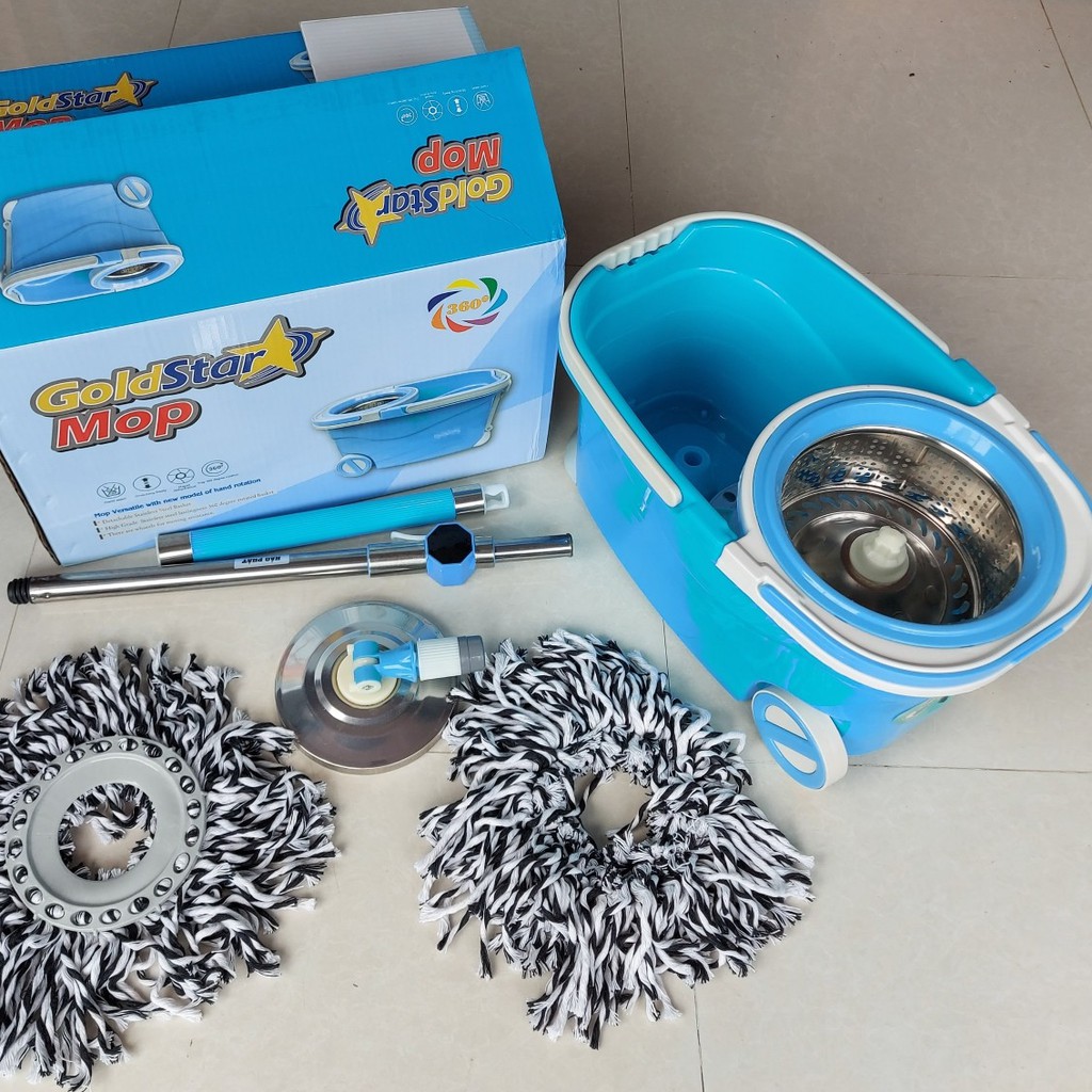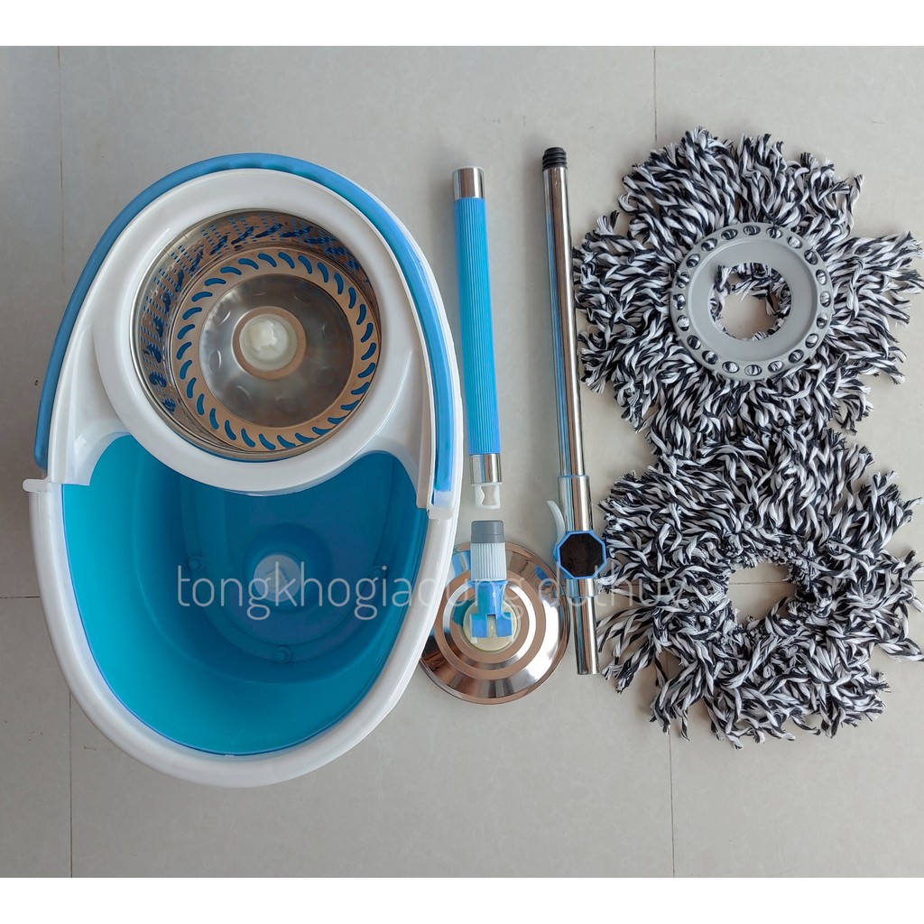• Thùng lau vuông: 1 thùng lau mâm inox xoay, 1 cây lau trợ lực, 2 bông lau.