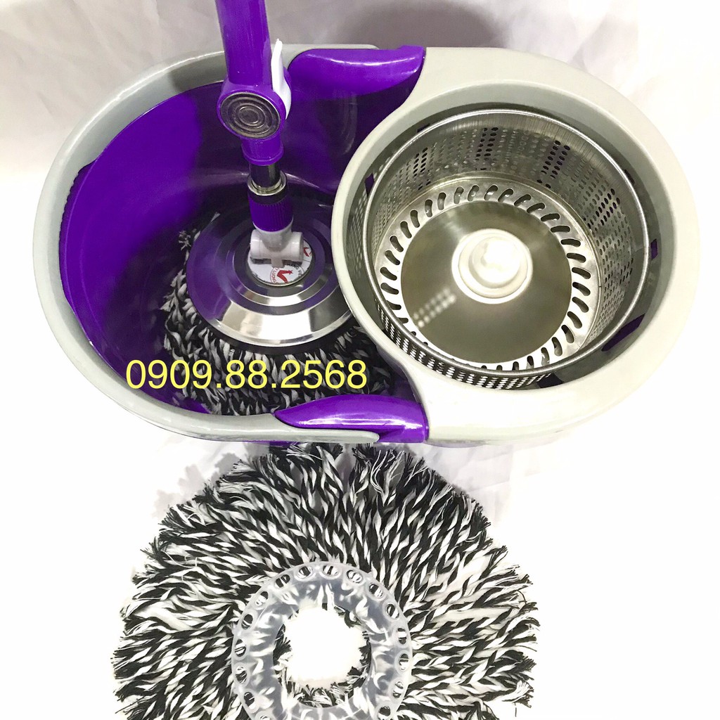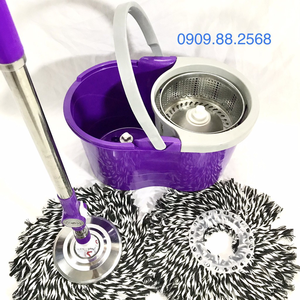 Thùng lau nhà 𝑭𝑹𝑬𝑬𝑺𝑯𝑰𝑷 Bộ lau nhà thông minh 360 độ lồng vắt inox, cây inox đường kính cây 25mm