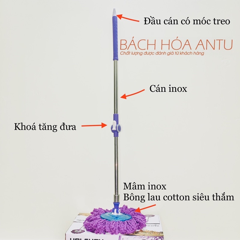 - 1 cây lau nhà xoay inox mâm nhựa