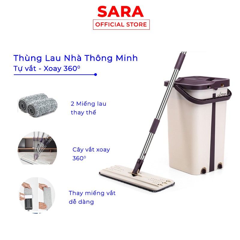 Thùng lau nhà thông Minh Tự Vắt Cây Lau 360 độ ShopsaraMột sản phẩm với thiết kế mới dành cho các bà nội trợ bận bịu khi vừa phải đi làm và vừa phải thể hiện bản thân là một cô vợ đảm đang