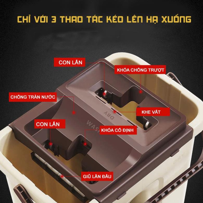 - Với 2 ngăn chứa nước, một ngăn nước sạch để lau và một ngăn chứa nước bẩn khi vắt, việc lau nhà sẽ hiệu quả hơn và sạch sẽ hơn nhiều