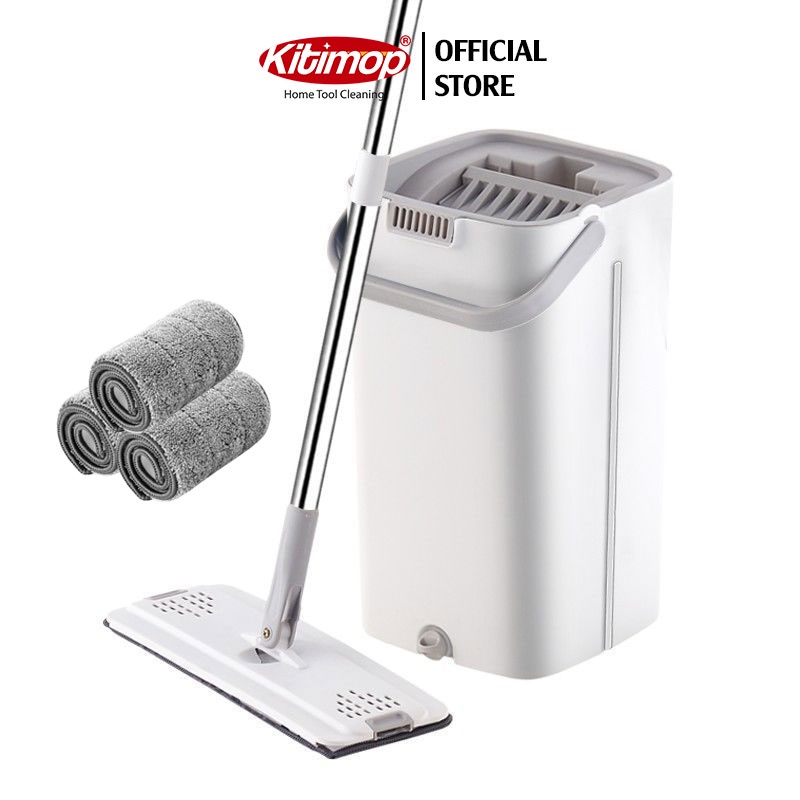 Thùng lau nhà tự vắt thông minh, chổi lau nhà 360 độ, lau sạch khô nhanh, bảo hành 12 tháng, 3 miếng lau - Kitimo